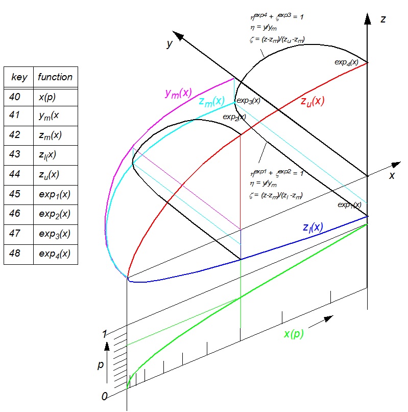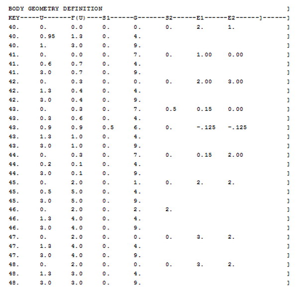 Body-type geometry (keys 40-48). Example: vehicle forebody |