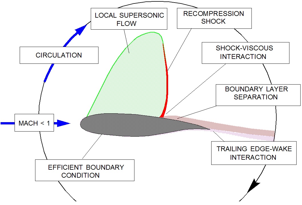 Airfoils and wings in transonic viscous flow