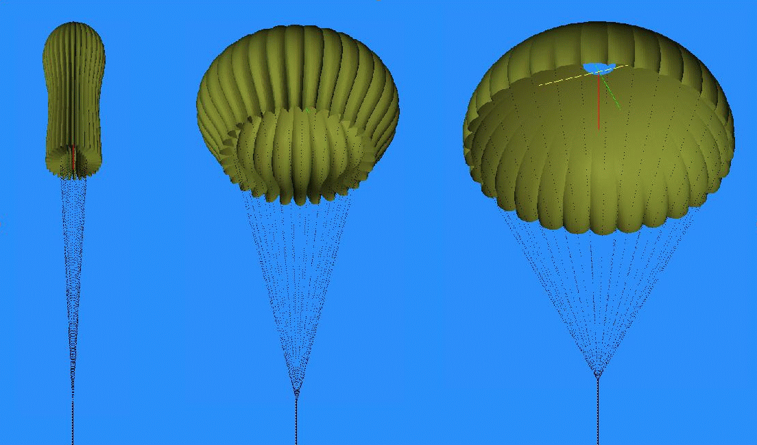 Flexible material deformed by flow: Unfolding of a parachute |