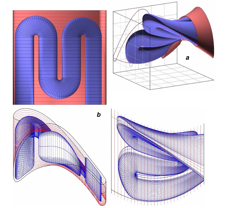 A combination of parameterized blade plus coolant duct geometries with turbine flow design, analysis of structure, heat transport, internal coolant flow.