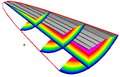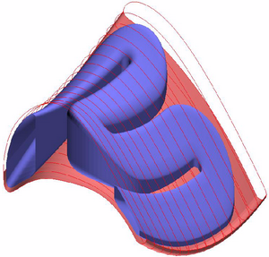 The capacity of geometry generation includes the definition of a parameter of a 4th dimension (e.g. time) to vary 3D shapes in a cyclic or arbitrary way. This is used to model unsteady and changing configurations, like the motion of rotor blades relative to the body and the flight direction of a helicopter. Using unsteady flow analysis in combination with transonic design, innovative blade sections are designed with adaptive sections to improve rotor performance through the whole circle. New fields of application are bionic models to learn from nature by simulating the movement of animals in water and air. |